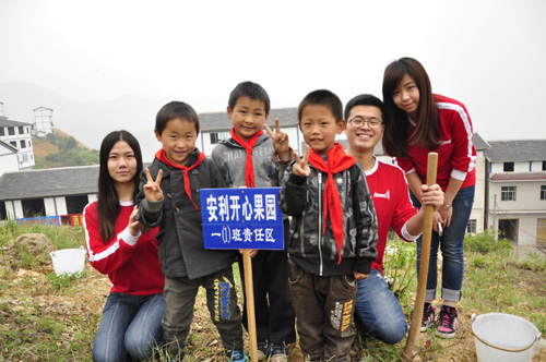 006年以来,重庆分公司开始在巫山教育部门进行爱心捐资活动,在多所山区小学创办有“爱心食堂”、“开心农场”等公益项目,深受县团委和广大师生好评。为使更多小朋友在学习之余体会生活的多彩乐趣,经县教委牵线搭桥,安利公司重庆分公司于2012年秋在巫峡镇教管中心移民学校珠海七星希望小学创办“安利开心果园”,利用校园荒地精心栽培200多珠良种脆李,约有6亩果园。经精心管护,李树全部成活,发出新芽,翠绿可爱,有了丰收的希望。