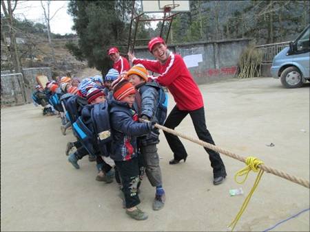接着,安利志愿者还与孩子们玩起了跳长绳和拔河文体活动,唱起了《新年好》歌曲,欢歌笑语响彻寒冷的天空,响彻温暖的化果小学!