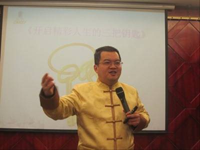 1月22日上午,周口分公司在地中海酒店举办了“开启精彩人生的三把钥匙”专题讲座,会议邀请到ACTI康艺伟讲师,他通过“想法决定结果、定位明确方向、环境改变人生”三方面诠释了他精彩怒放的人生,给到场的营销人员深入浅出的分析了开启精彩人生的三把钥匙是如何在日常工作中广泛应用的,得到了广大营销人员的掌声和好评。