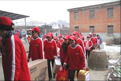 2012年12月27日,天气寒冷异常,凛冽的寒风吹的人们的脸生疼,寒风夹着飘扬雪花,给大地披上了一层圣洁的妆容。在这寒冷的冬日里,南阳分公司志愿者协会的50余名志愿者来到靳岗社区"爱之家"福利院,看望残疾婴儿和孤寡老人,并为福利院送去一批粮油、蜂窝煤、冬菜、奶粉、纸尿裤等急需的的过冬物资,还有电视机、电暖气等爱心物资。