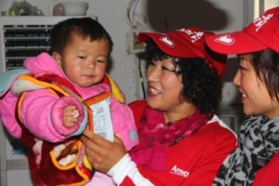 在爱之家福利院,当福利院周院长从安利志愿者手中接过捐赠的爱心婴儿奶粉时激动万分,不停的向大家道谢。残疾孤儿小玛丽不顾天气寒冷,从房间里跑出来,看到安利的叔叔阿姨们带来这么多礼物,边比划边用不很清晰的童音说到:院长奶奶再也不用发愁,害怕我们冷了。她为大家唱起了歌曲《让爱到我家》,大家一起为她拍手伴奏!