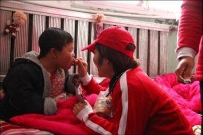 志愿者们随后还与福利院的孩子们开展亲情互动,她们纷纷抱起这些被亲生父母遗弃的孩子,给他们喂奶粉、喂好吃的、给他们换上舒适的纸尿裤、给他们擦脸涂雅蜜儿童润肤露、为他们剪指甲,这些孩子在如母亲般亲情的温暖和感化下,也仿佛对志愿者有了信赖和依恋的感觉,伸出小手抚摸志愿者的脸庞,现场情景无不令人动容。