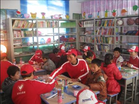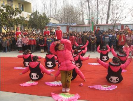 12月25日9:00,志愿者乘坐的大巴车还未到校门口,欢快的腰鼓声已传进耳中,“看,孩子们在欢迎我们呢!”,志愿者们兴奋地说,车里立刻沸腾起来,大家全都站起来,把目光投向窗外,只见一群孩子们身着礼服打着腰鼓跳起舞,欢快的舞蹈像是冬天里的一把火,使大家心里感到暖意融融。走进学校,往日宁静的校园里充满欢声笑语,孩子们系着鲜艳的红领巾,在安利志愿者的陪同下,整齐地坐在校园里,脸上洋溢着幸福的微笑,为了表达对志愿者的欢迎,孩子们表演了精彩的节目,《春天的翅膀》、《感恩有你》等一个个精彩的节目尽情抒发着孩子们对未来的美好向往和对生活的感恩之情,孩子们稚嫩的歌声和优美的舞姿引来众多村民在校门口驻足观看,每个人都期待着激动人心时刻的到来……
