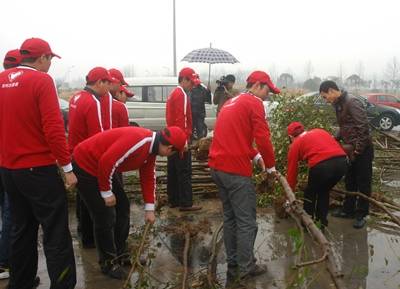 3月16日上午,安利红成为市民植树现场一道亮丽的风景,虽然下着雨,他们植树的热情仍然高涨,他们表示风雨挡不住安利人投身公益的脚步和绿化家园的决心。